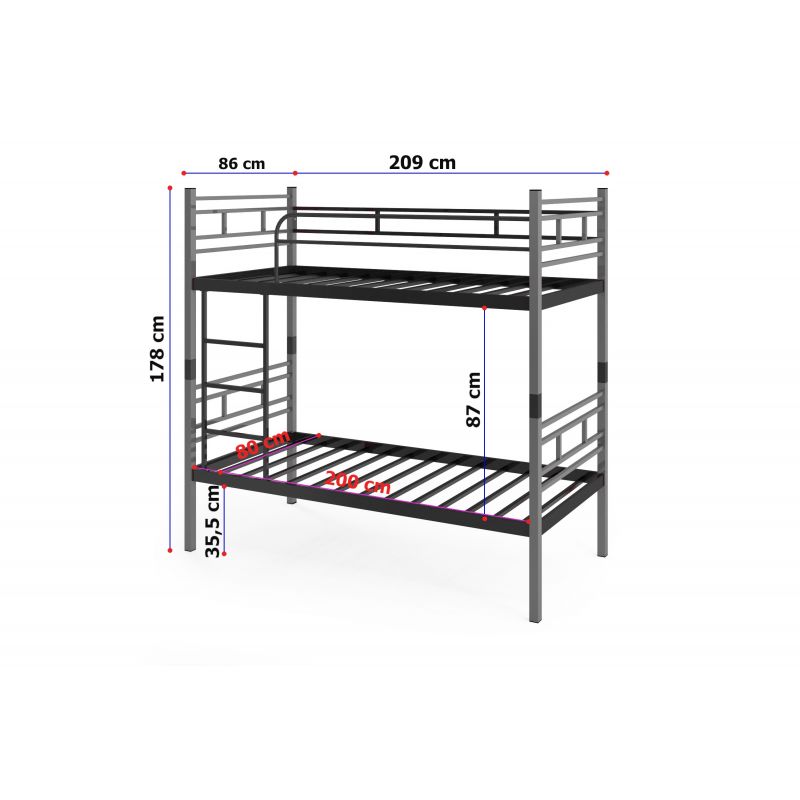 Wymiary łóżka piętrowego metalowego Agnes 80 cm