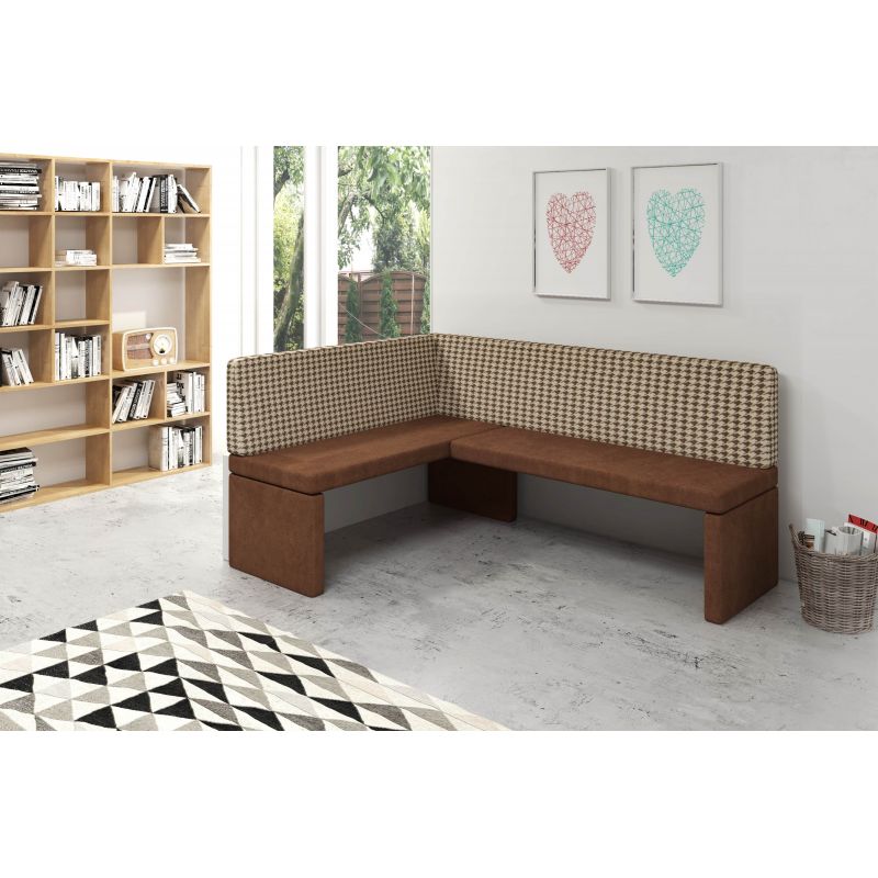 Narożnik kuchenny Pepitka jest w całości tapicerowany, wykonany w eko-skórze o podwyższonej odporności na ścieranie. Nowoczesny design, bardzo eleganckie przeszycia sprawiają, że pasuje zarówno do nowoczesnej kuchni czy też jadalni, ale również do minimalistycznego salonu.