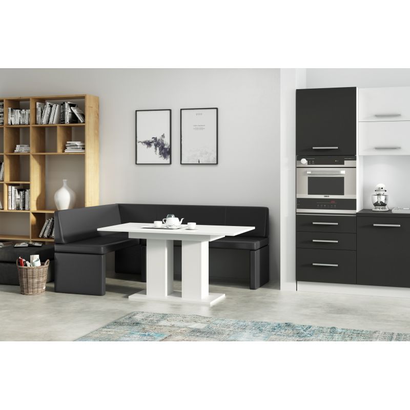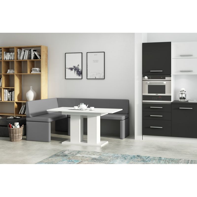 Narożnik kuchenny Olga jest w całości tapicerowany, wykonany w eko-skórze o podwyższonej odporności na ścieranie.Nowoczesny design sprawia, że pasuje zarówno do kuchni czy też jadalni, ale również do minimalistycznego salonu.