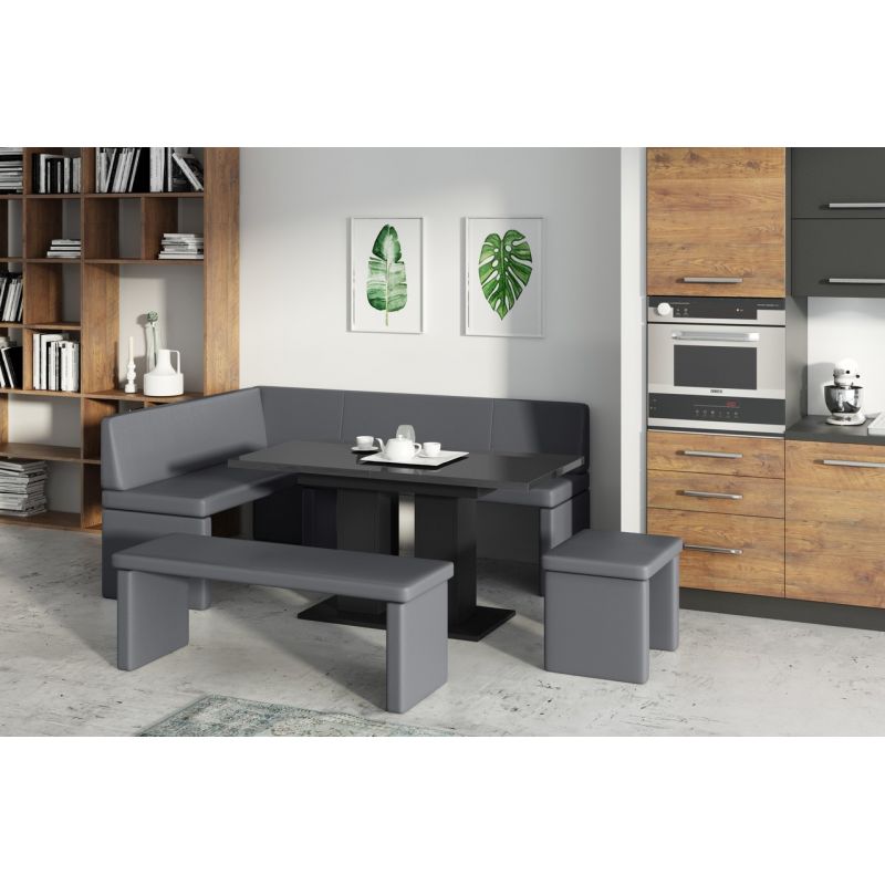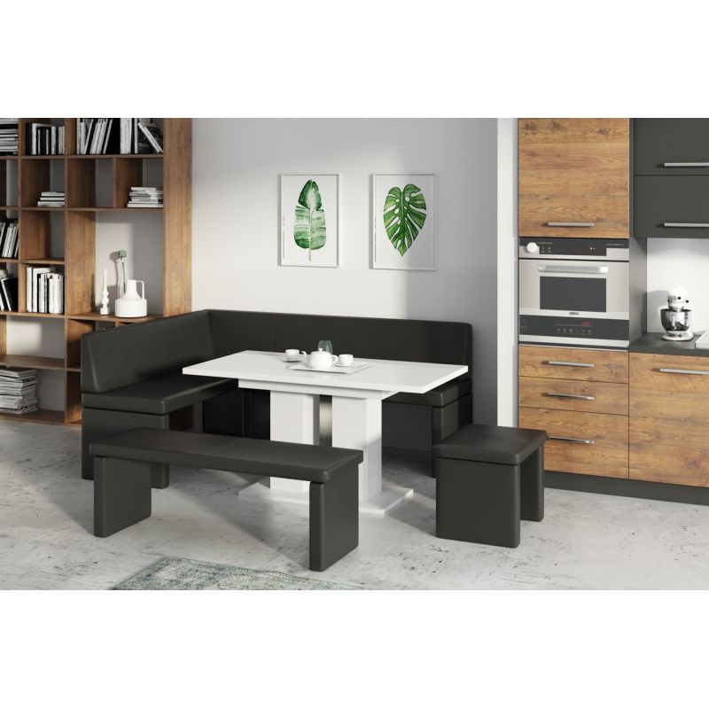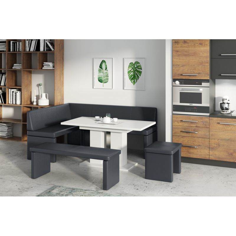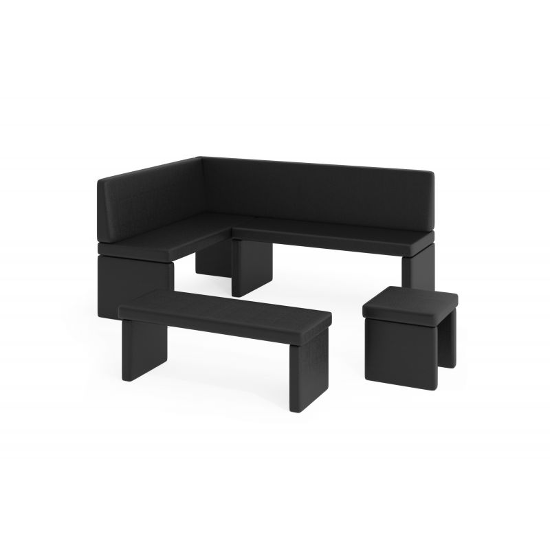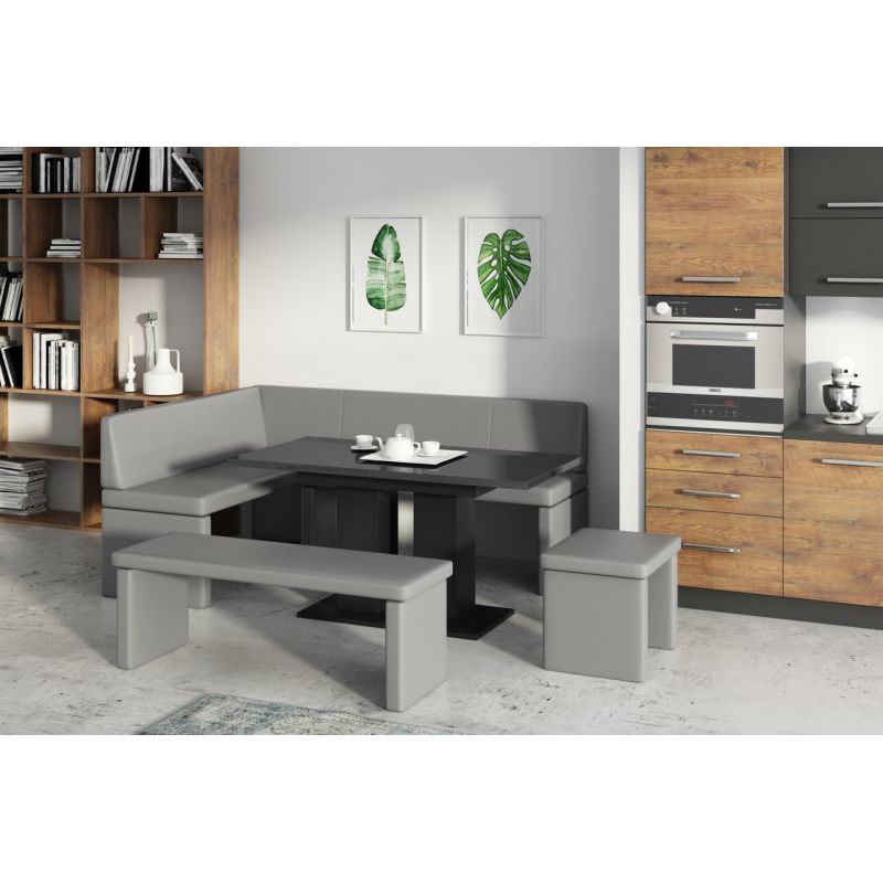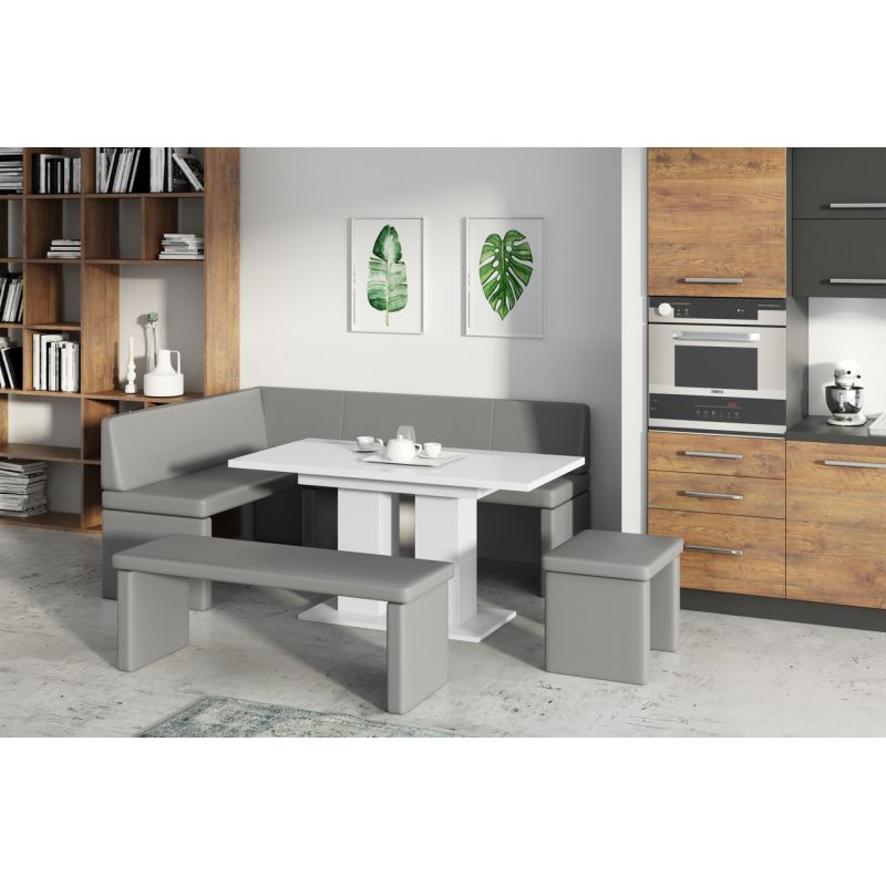 Narożnik kuchenny Olga, ławka pojedyncza i taboret są w całości tapicerowane, wykonane w eko-skórze o podwyższonej odporności na ścieranie. Nowoczesny design sprawia, że pasuje zarówno do kuchni czy też jadalni, ale również do minimalistycznego salonu.