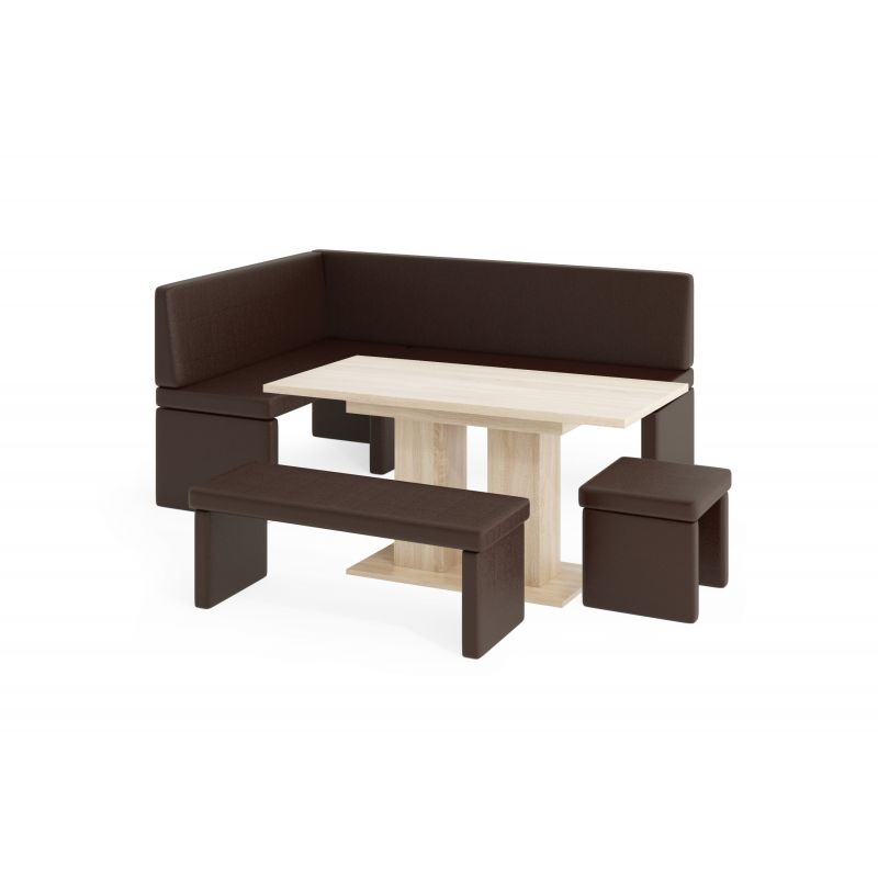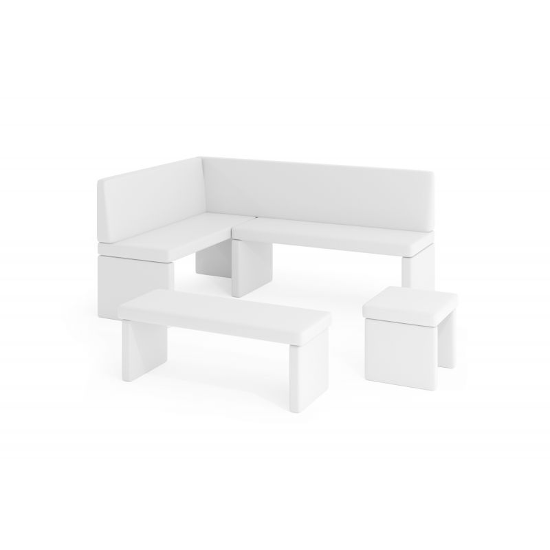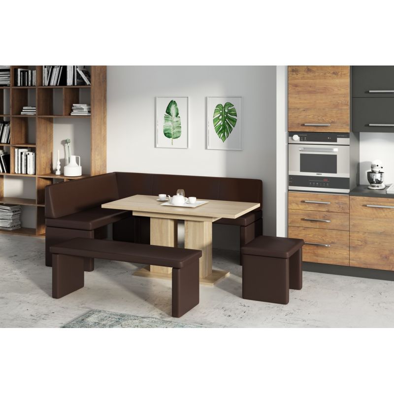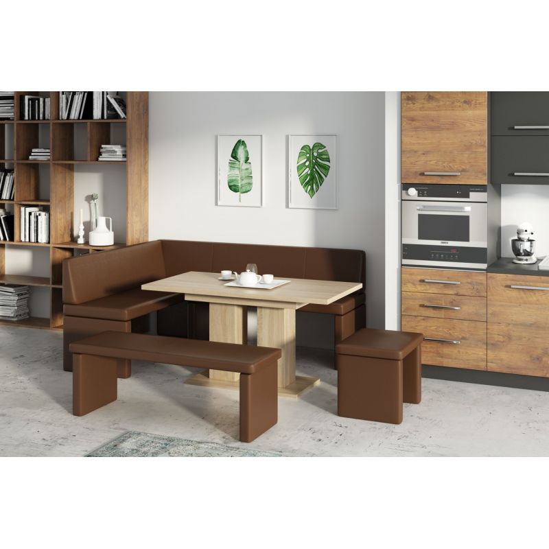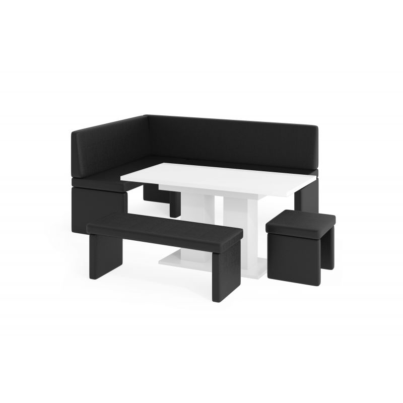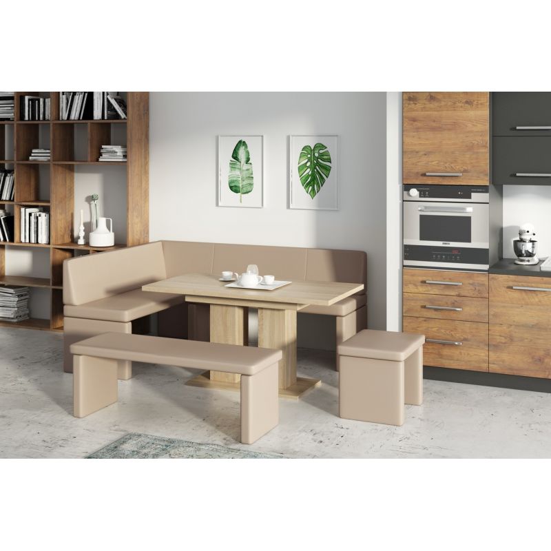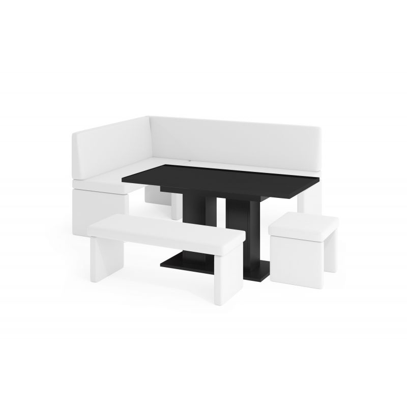 Narożnik kuchenny Olga, ławka pojedyncza i taboret są w całości tapicerowane, wykonane w eko-skórze o podwyższonej odporności na ścieranie. Nowoczesny design sprawia, że pasuje zarówno do kuchni czy też jadalni, ale również do minimalistycznego salonu.