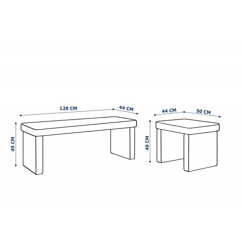 Oferujemy narożnik w wymiarach 128 x 168 cm w opcji lewostronnej lub 168 x 128 cm w opcji prawostronnej w zależności od potrzeb i aranżowanej przestrzeni, ławka szerokości 128 cm i taboret szerokości 50 cm.