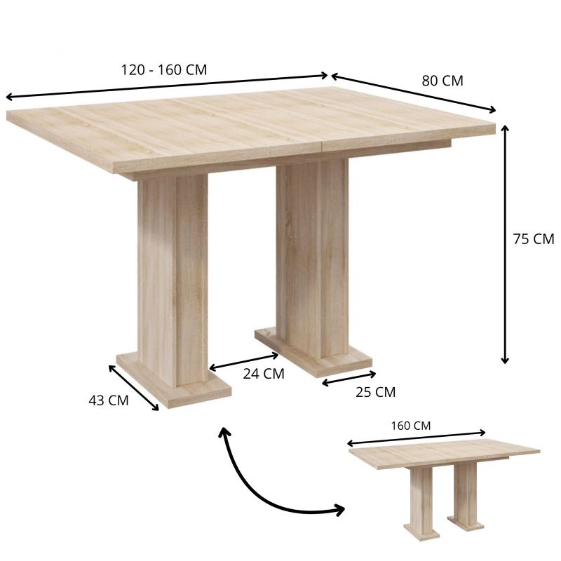 Stół kolumnowy rozsuwany Aga w różnych kolorach! Stół kolumnowy na dwóch solidnych nogach, zapewniających stabilność.