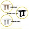 Dla kolorów białego i czarnego blat jest połyskujący wykonany z laminatu, a pozostałe elementy matowe z płyty meblowej. Dla koloru sonoma, cały stół jest matowy.